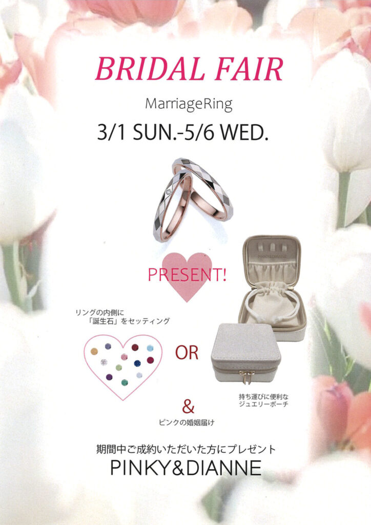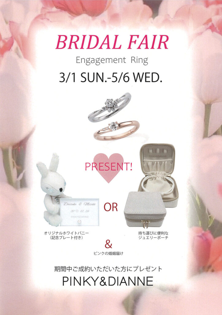 3月1日(日)~5月6日(水)まで、ピンキー&ダイアン「ブライダルフェア」を開催いたします。