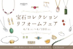 COCCOでは【宝石コレクション&リフォームフェア2026】を開催いたします。 📍場所:COCCO本館1階📍日時:4月4日(土)〜4月19日(日)まで フェア期間中は当日だけの豊富で魅力的 … 続きを読む 宝石コレクション&リフォームフェア2026