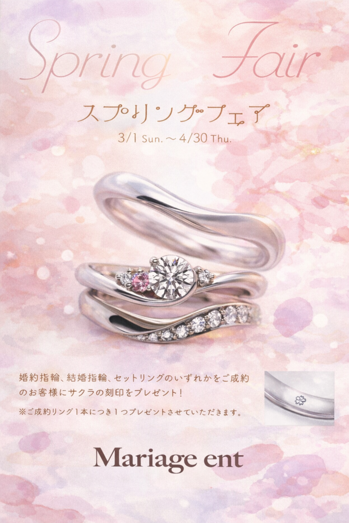 フェア期間中クワンドゥマリアージュのブライダルリングご成約のお客様に、サクラの刻印をプレゼント!🎁