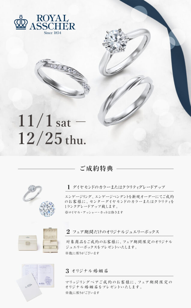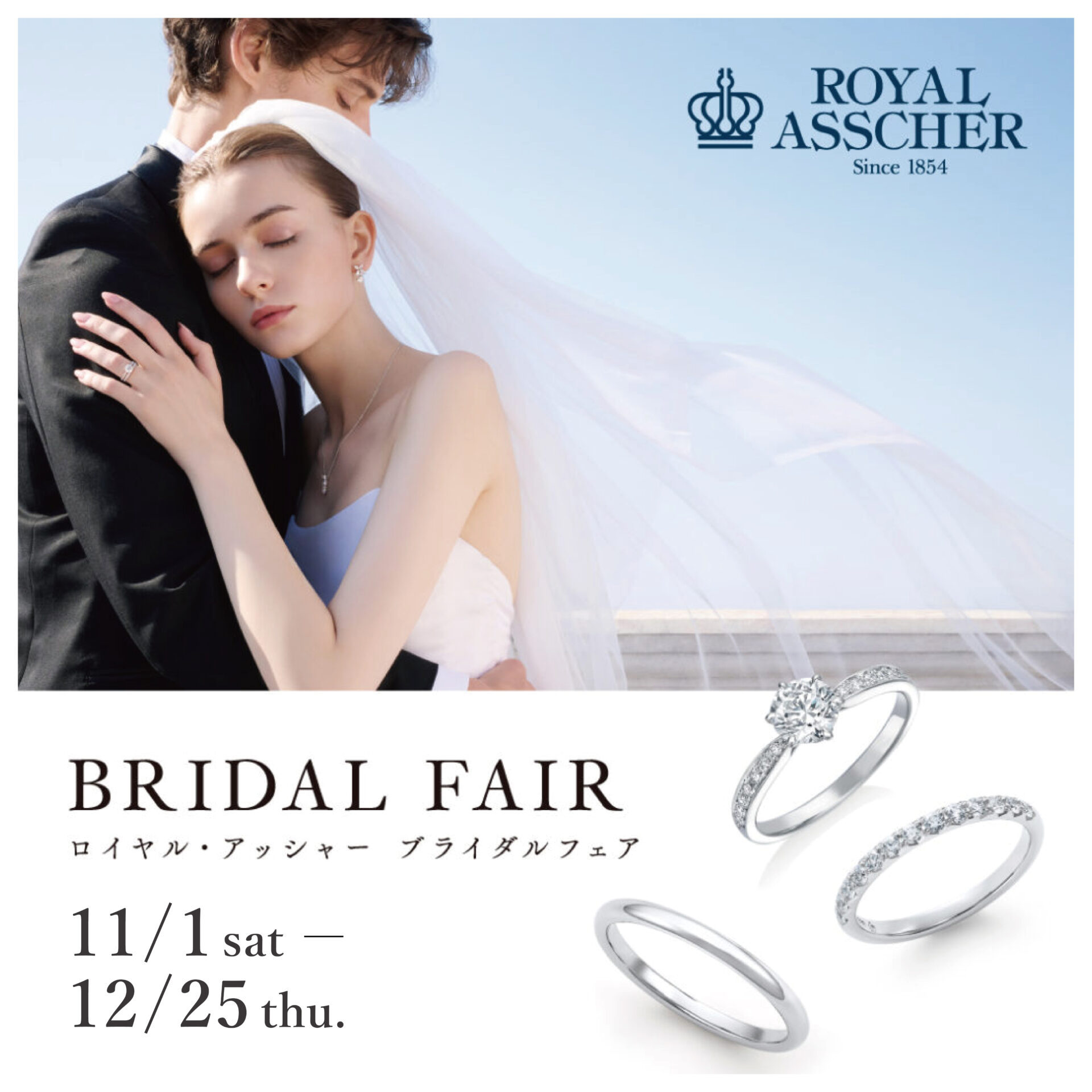11月1日(土)~12月25日(木)まで、ロイヤル・アッシャー 「ブライダルフェア」を開催しております。