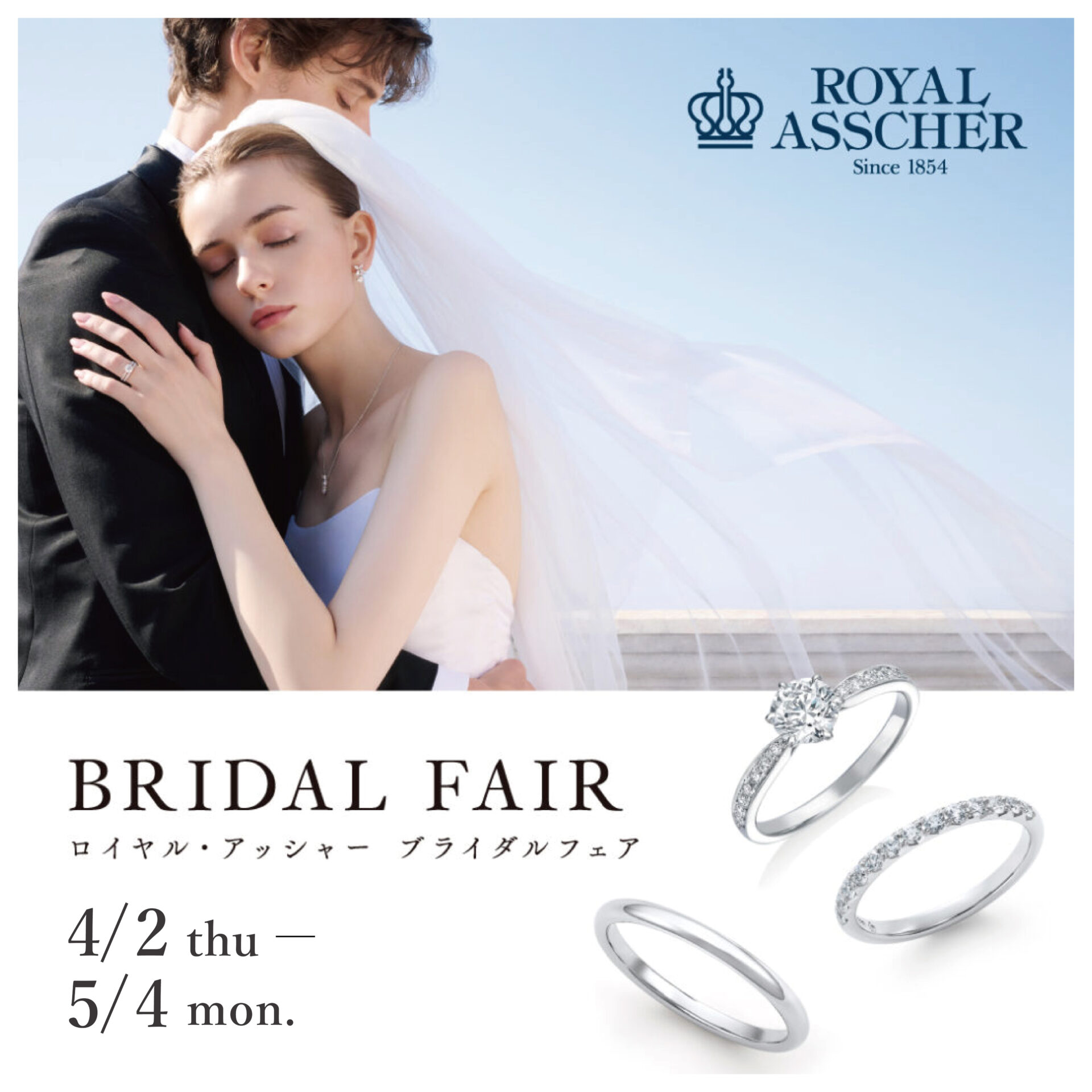 4月2日(木)~5月4日(月)まで、ロイヤル・アッシャー 「ブライダルフェア」を開催しております。
