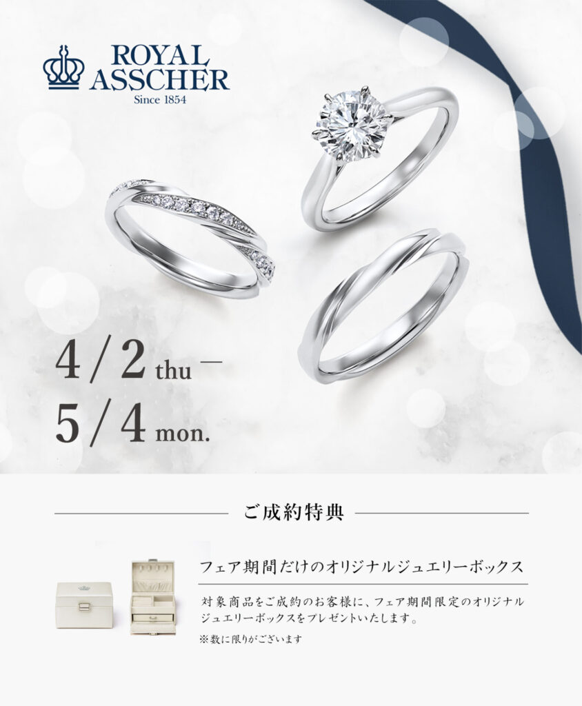 特典はロイヤルアッシャーの新作オリジナルジュエリーボックス。ロイヤルアッシャーのリングを選ぶなら今がチャンス!