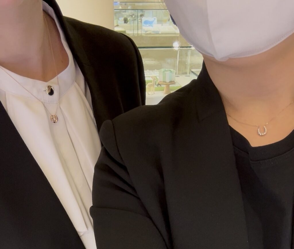 右のスタッフは、素材はプラチナでダイヤモンドが馬蹄の部分を埋め尽くしているので存在感があります✨