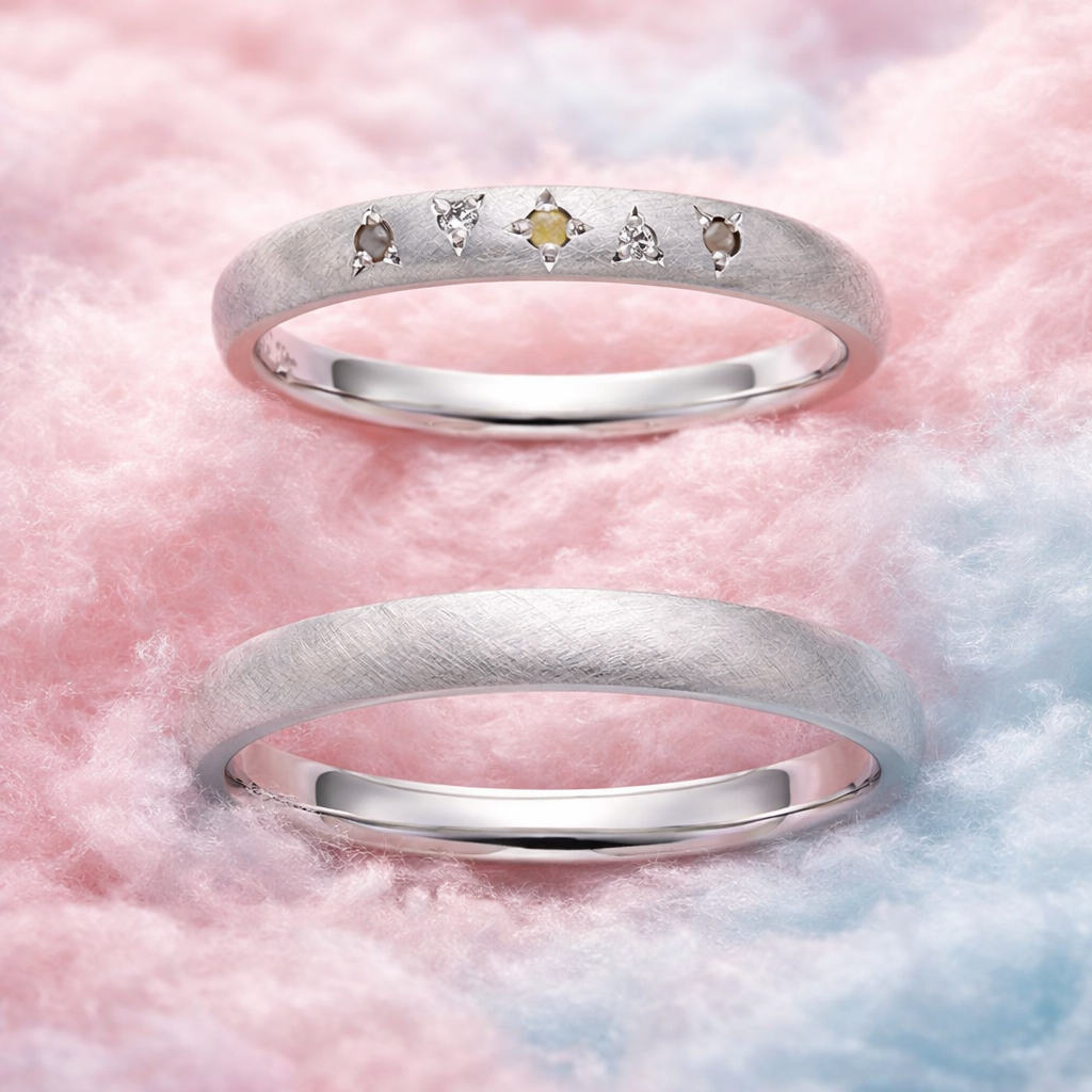 ふわふわのわたあめをイメージした結婚指輪。