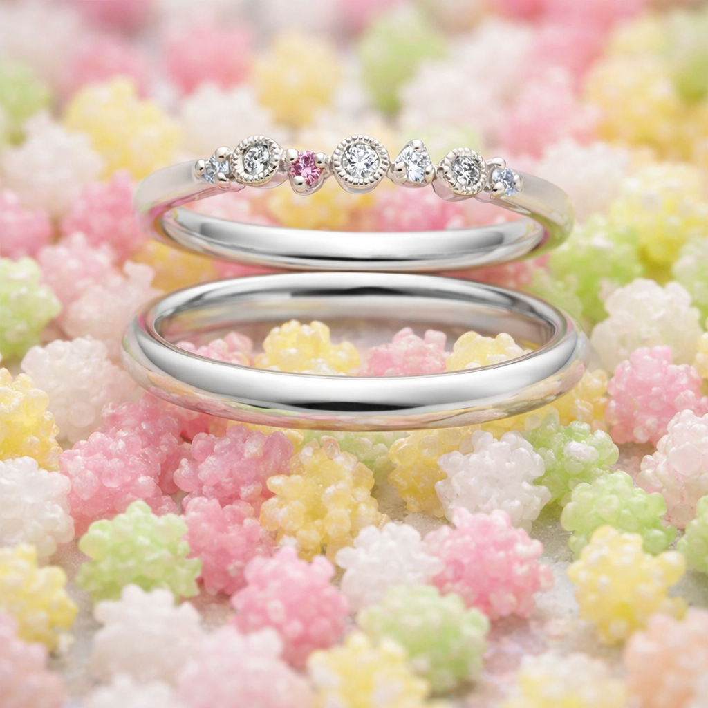 今回は和菓子をコンセプトに作られた結婚指輪を2点ご紹介致します💜