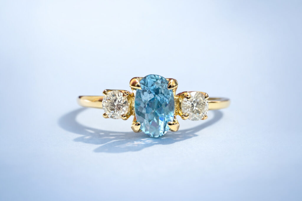 ダイヤモンドが引き立てるアクアマリンのゴールドリング